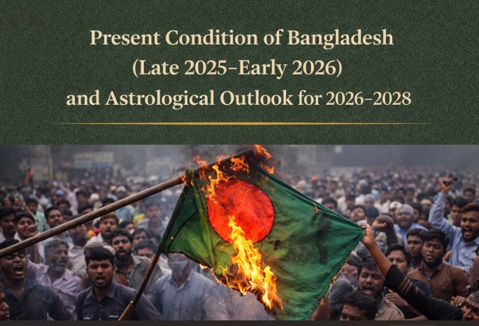 Internal Fragility, Communal Stress, and Regional Security Risks I. Ground Reality: Late 2025 Snapshot Bangladesh appears outwardly stable, yet internal fragility is intensifying: Governance: Highly centralized; opposition space constrained; public trust eroding—raising the risk of sudden shocks rather than gradual reform. Law & Order: Rising incidents of mob justice, lynching, and communal violence, especially in … Continue reading Present Condition of Bangladesh (Late 2025–Early 2026) and Astrological Outlook for 2026–2028