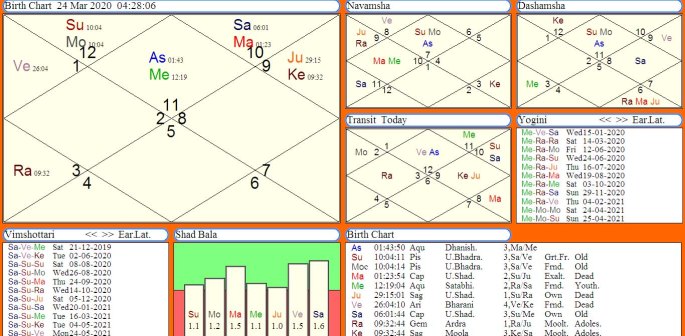Nav samvatsar rising in America on 24-3-2020.:Nav samvatsar 2020 of USA has rising Aquarius lagna with lagna lord in twelfth house with tenth lord mars .Saturn ,mars conjunction is not good for America .This combination depicts conflicts with other nation of super power USA.Saturn aspect both luminaries sun,moon in second house of finance .Aquarius is seventh house of independence horoscope of America which represent wars and conflict with other nation.