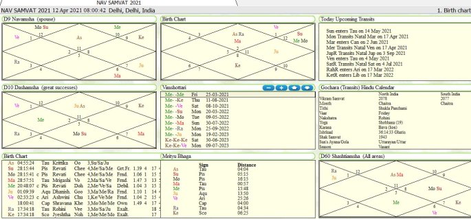 Nav samvatsar is technique devised by ancient Indian sage form the start of of yugas to calculate future of any country or state for period of one year. Sun and moon coincide with equal degree ,minutes ,seconds in Pisces sign to start of new nav samvatsar. For year 2021nav samvatsar[2078]has started on 12-4-2021 at 8-00-42 hrs delhi.