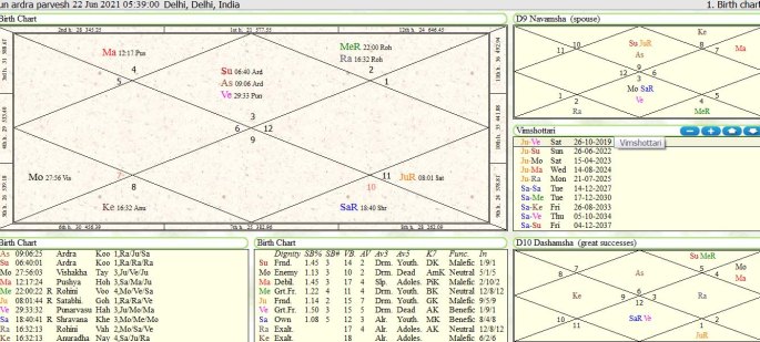Sun has entered Ardra nakshtra on Tuesday on 22 june 2021 at 5hrs 39min Delhi in Gemini sign or lagna is forming for India or Bharat varsh. Sun Ardra Nakshatra pravesh chart is used to predict monsoon for India for coming four months from 22-6-2021 on wards.