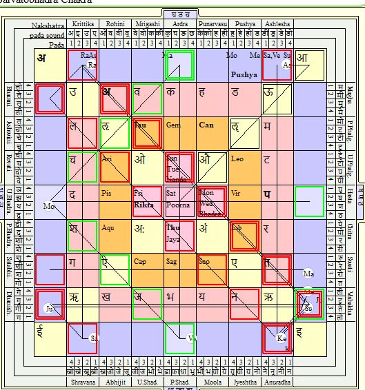 Sarvatobhadra chakra for monthly progression started from 15-10-2021to15-11-2021