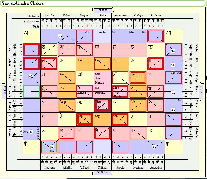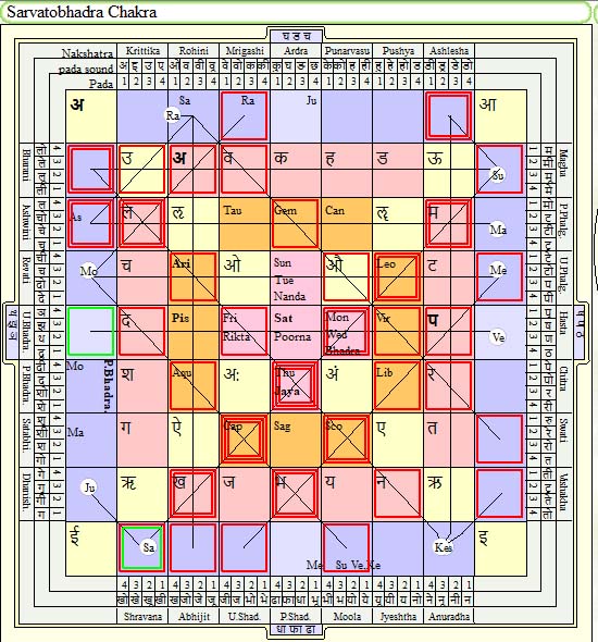 Sarvato bhadra chakra for day of 26-8-2021 at10-20am