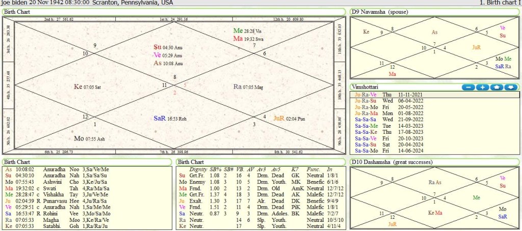 Our dear PM Narendra Modi is leading BJP on national level .Otherwise BJP is slowing down its momentum on issue of lifting majority community or for the benefit of majority community .BJP is running in weak anter dasha of 10th lord Jupiter is mahadasha of moon. Since mahadasha lord moon is forming a Gajkesari yoga with anter lord Jupiter in 3rd and 6th house in 4th and 10th house in relation to each other .BJP saffron drive in BJP is under Yogi Aditya Nath in UP and Himanta Vishwa Sarma in Assam is praise worthy .