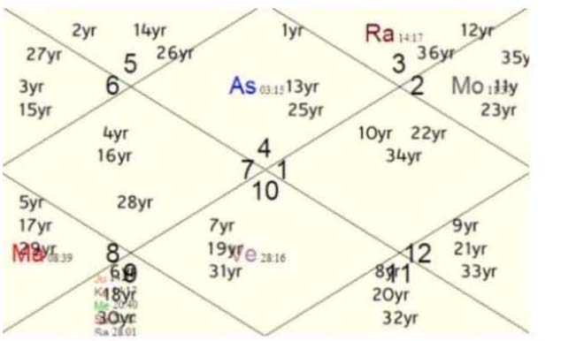 [Sudershan chakra work in very simple manner. First year represent fist house ,second year represent second house so on keep on counting up to twelfth house .Then thirteen year comes to lagna fourteen year comes to second house and twenty forth comes to twelfth house .Twenty fifth year again lagna like this keep on progressing ]