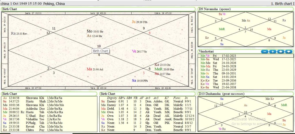 Sixth house and 6th lord Mercury represent war or start of World War -3 from the horoscope of China. After this China as a country will divided into number of parts like Pakistan and india or Bharatvarsh will come as financial and military Super Power which will be counted number one under PM Narendra Modi.