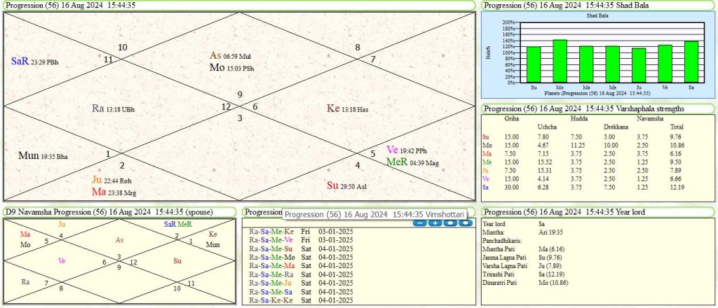 Anter of Mercury:.Mercury anter lord is lagna and 4th lord conjunct with ketu in 9th of luck. Retro Saturn ,retro Mars ,retro Jupiter aspect to Mercury in 9th house. We have seen the position of BJP has improved in this anter of Mercury in mahadasha of moon.Mercury in navamsha d-9 chart is 2nd and 5th lord well posited in lagna conjunct with Rahu. This position is good for BJP. In BJP, only CM Yogi Adtiya Nath, CM Hemant Biswa Sharma, and CM Chandramohan Yadav are working well. They effectively counter the emotion of the majority community. Central leadership lacks a better narrative for the majority community. The conjunction of Mercury and Rahu in lagna is the cause. We have seen PM Narendera Modi government fall short of full majority due to this Rahu ,Mercury conjunction in lagna.