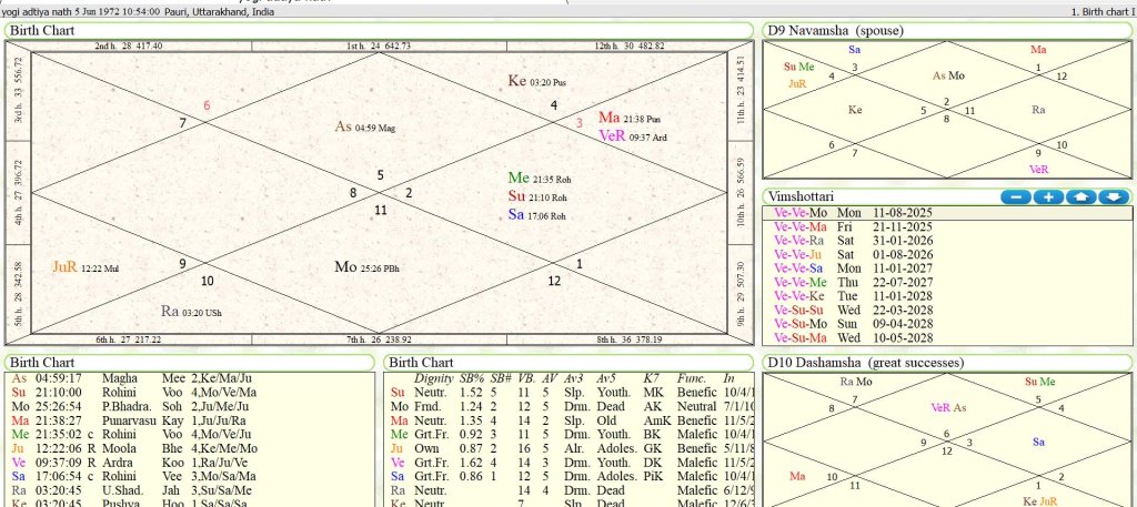 भृगु ज्योतिष से उत्तर प्रदेश की मुख्या मंत्री योगी आदित्य नाथ का फलदेश