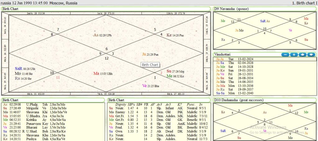 - Russia is under Jupiter–Jupiter Mahadasha (13 Feb 2024 – 2 Apr 2026), a period of heightened activity.