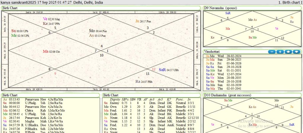 To fully assess the impact of Mars in Virgo and its opposition from Saturn, one must consider not only India’s natal horoscope but also key solar transitions: Karak Sankranti, Singh Sankranti, and Kanya Sankranti. Each of these will shape domestic and geopolitical events significantly.