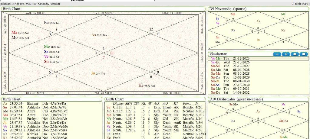 - Mars aspect on 6th → large-scale war effort by India, liberation of Baluchistan, and collapse of Pakistani authority.