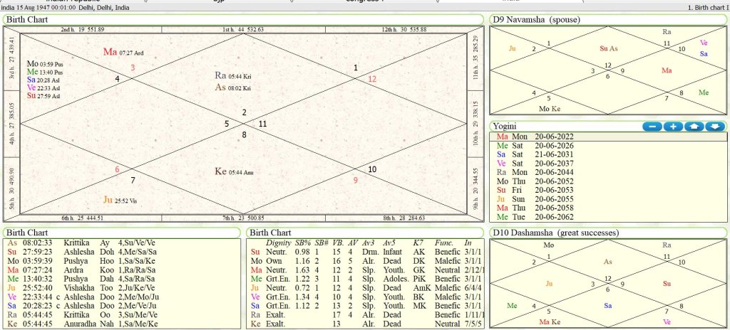 | 2025–2027 | Mars Mahadasha (India), Moon–Ketu (BJP), Saturn–Saturn (Congress-I) | Heightened caste census debates; OBC–Dalit mobilization | Rise of caste-based politics |
