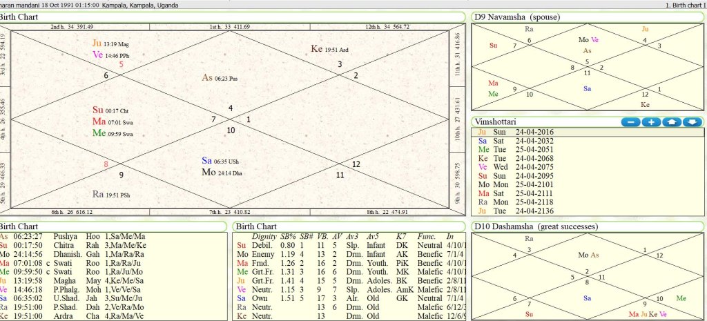 Birth Data: 18 October 1991, 01:05 AM, Kampala, Uganda