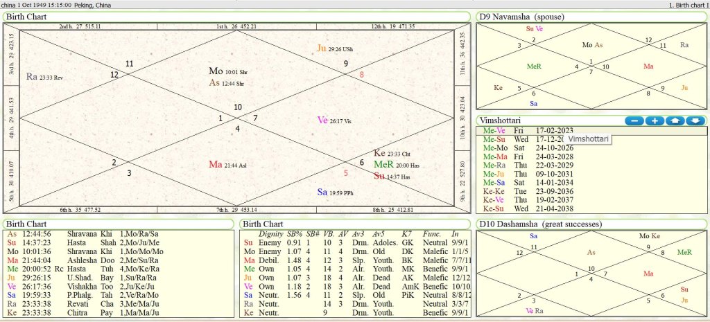 - Strong dictatorial leadership (Mars aspects 10th house from both Moon & Lagna).
