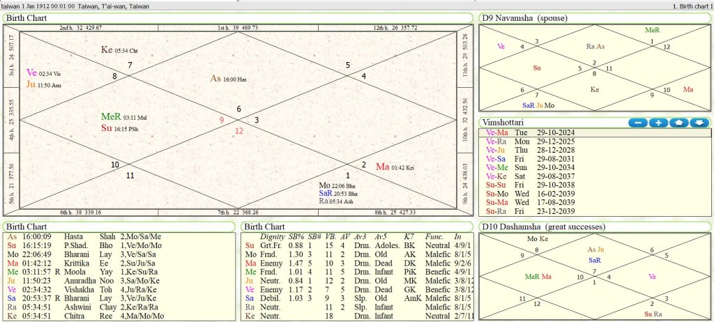 Birth Data: 1 Jan 1912, 00:01, Taiwan